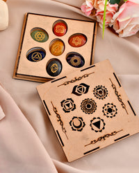 Unlock holistic wellness and spiritual harmony with the "Engraved 7 Chakra Crystal Healing Stone Set" from Jaipur Crystal Gems. This beautifully curated box features seven natural oval-shaped gemstones, each expertly engraved with a unique chakra symbol representing the Root, Sacral, Solar Plexus, Heart, Throat, Third Eye, and Crown chakras. Designed for healing, meditation, and energy balancing practices, these vibrant crystals help unblock, align, and activate the body's major energy centers to promote health, positivity, and peace.