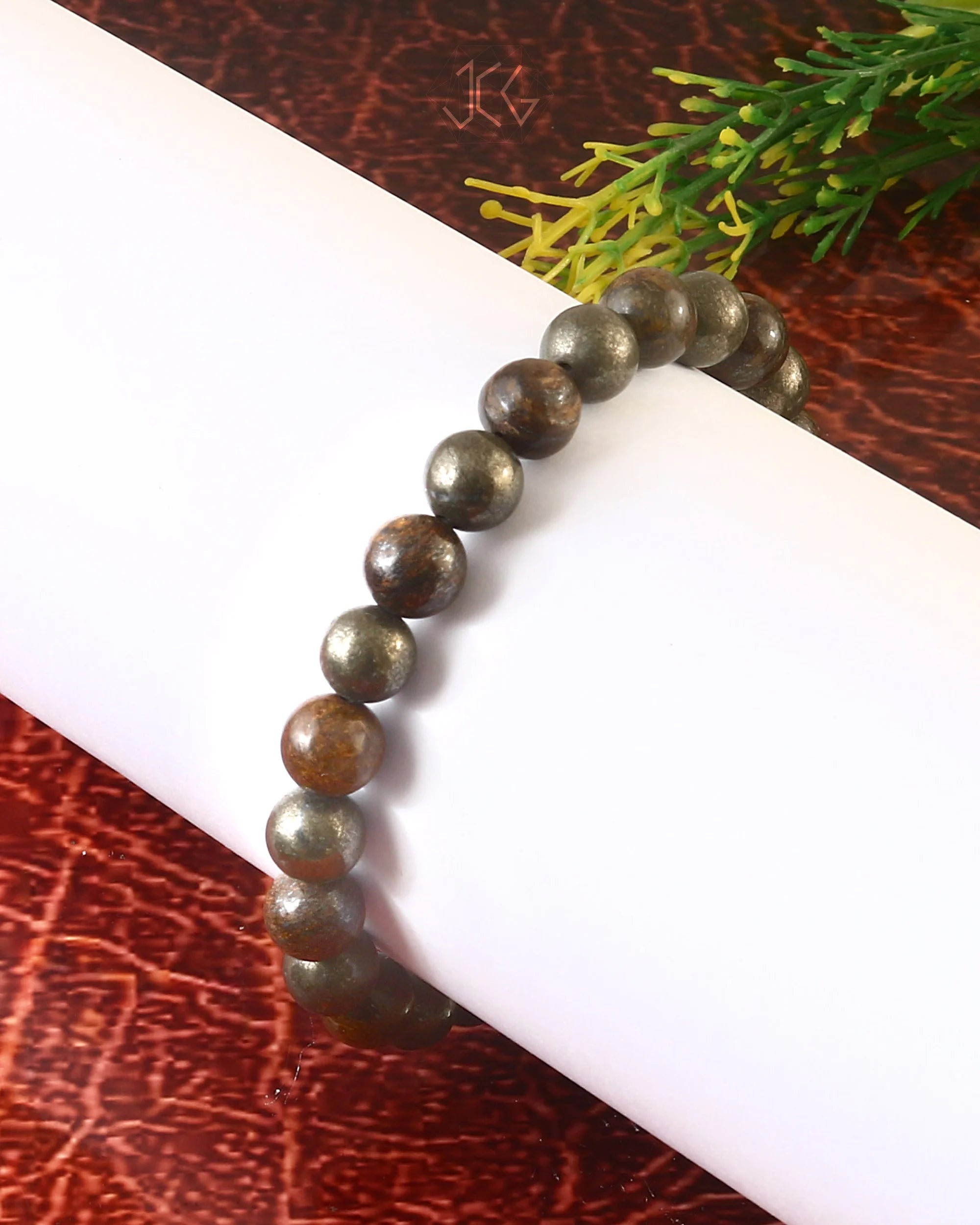 - Material: 8mm Bronzite and Pyrite beads strung on an elastic cord.