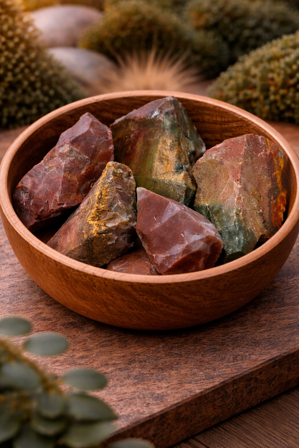 High-quality Bloodstone is traditionally sourced from India (especially Gujarat), which is considered one of the most authentic and energetically strong origins. Other sources include Brazil, Australia, China, and parts of Africa. Indian Bloodstone is particularly prized for its rich green tone and clearly visible red speckles.