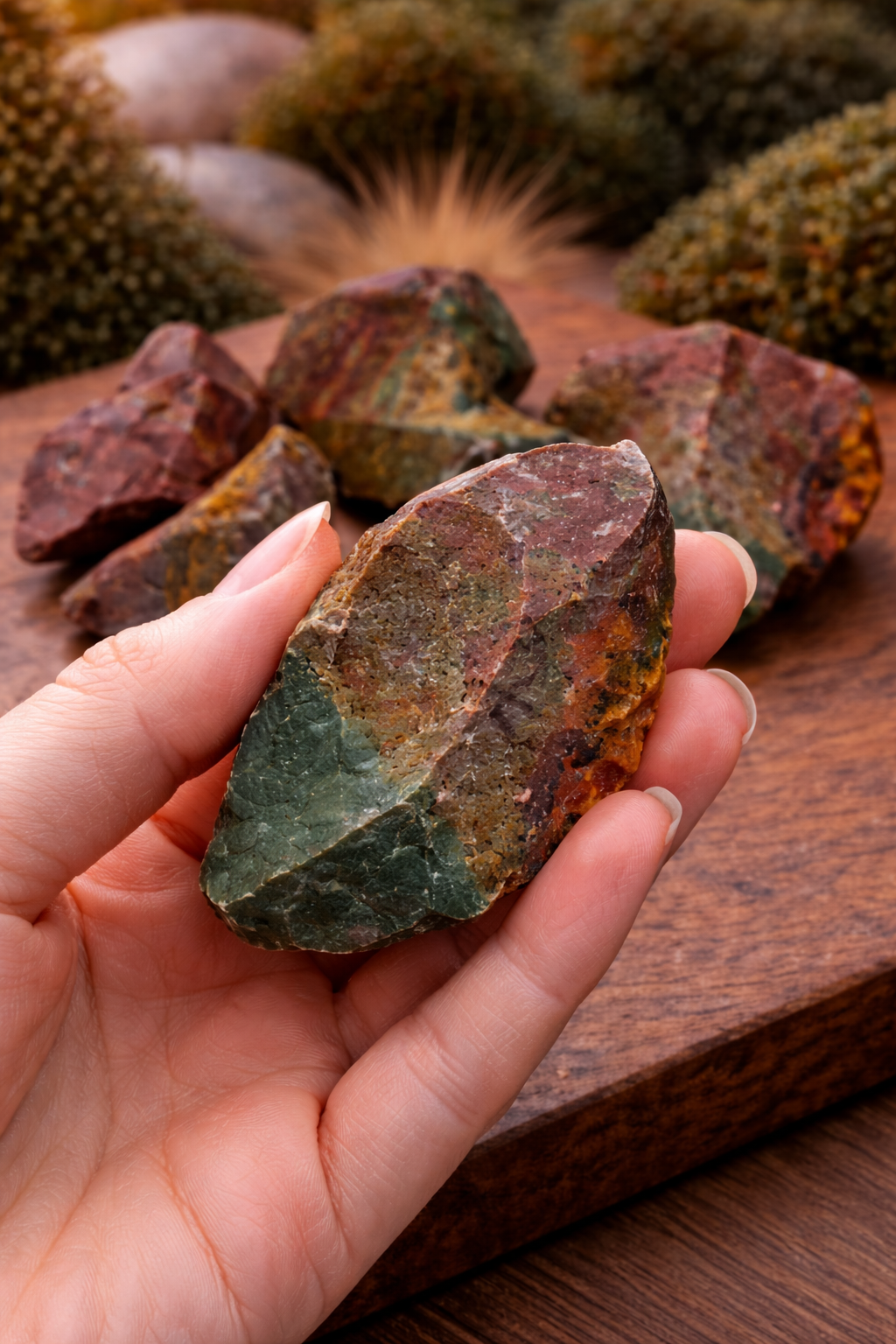 Texture: Opaque to slightly translucent, raw stones have a rugged, earthy surface