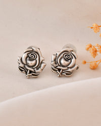 Enhance festive elegance with the Rose Blossom Dandiya Stud Earrings from Jaipur Crystal Gems. Beautifully handcrafted in high-quality white metal, each earring features a sculpted rose with intricate leaf detailing, completed in a classic oxidized finish. These lightweight studs offer a graceful and versatile option for Dandiya nights, Garba, and all traditional celebrations. Their timeless design effortlessly pairs with ethnic attire, making them perfect for those who appreciate understated beauty and artisanal craftsmanship in their jewellery collection.
