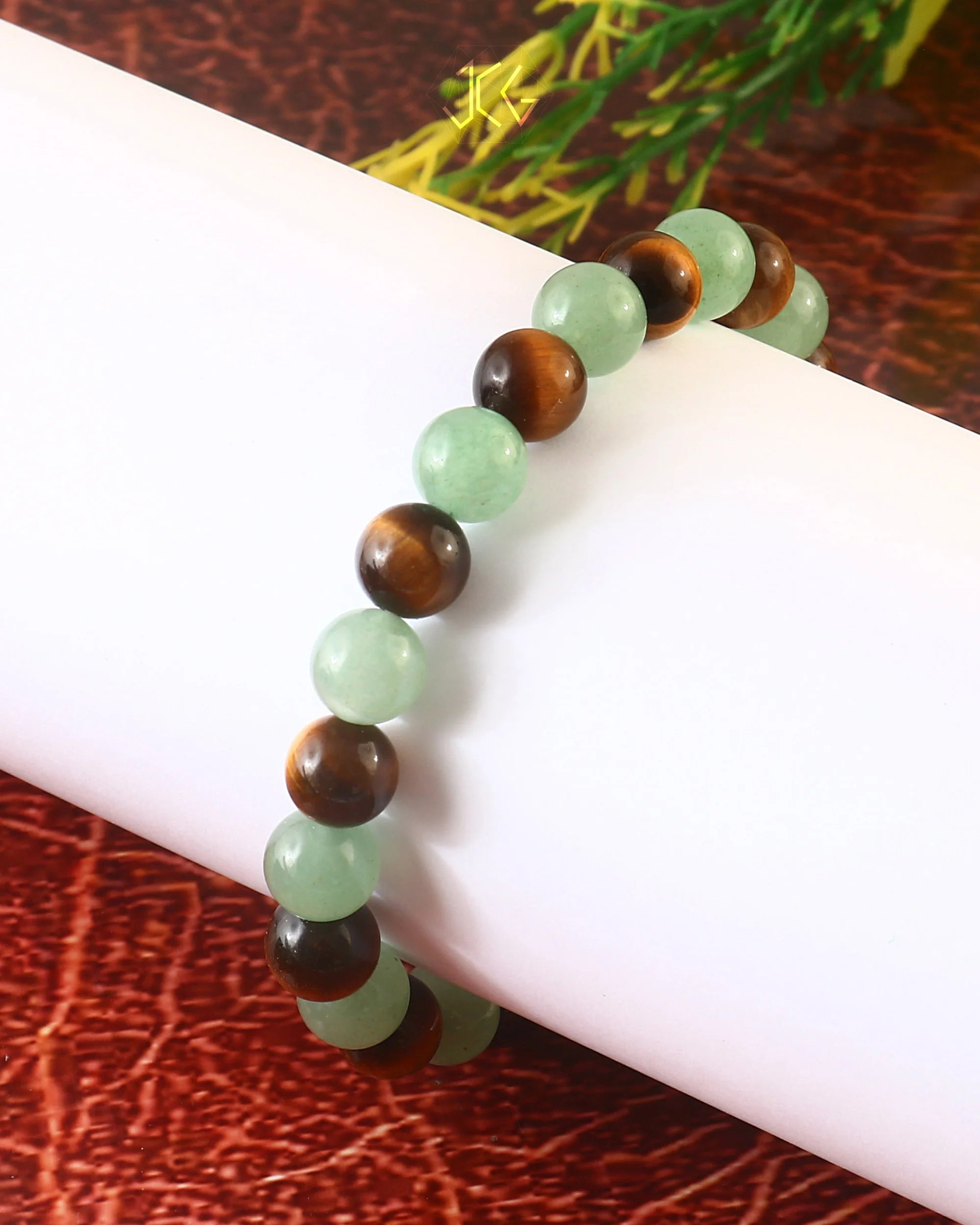 The Career in Marketing and Ads Bracelet features 8mm beads of Tiger Eye and Green Aventurine, perfect for professionals in the marketing and advertising fields.