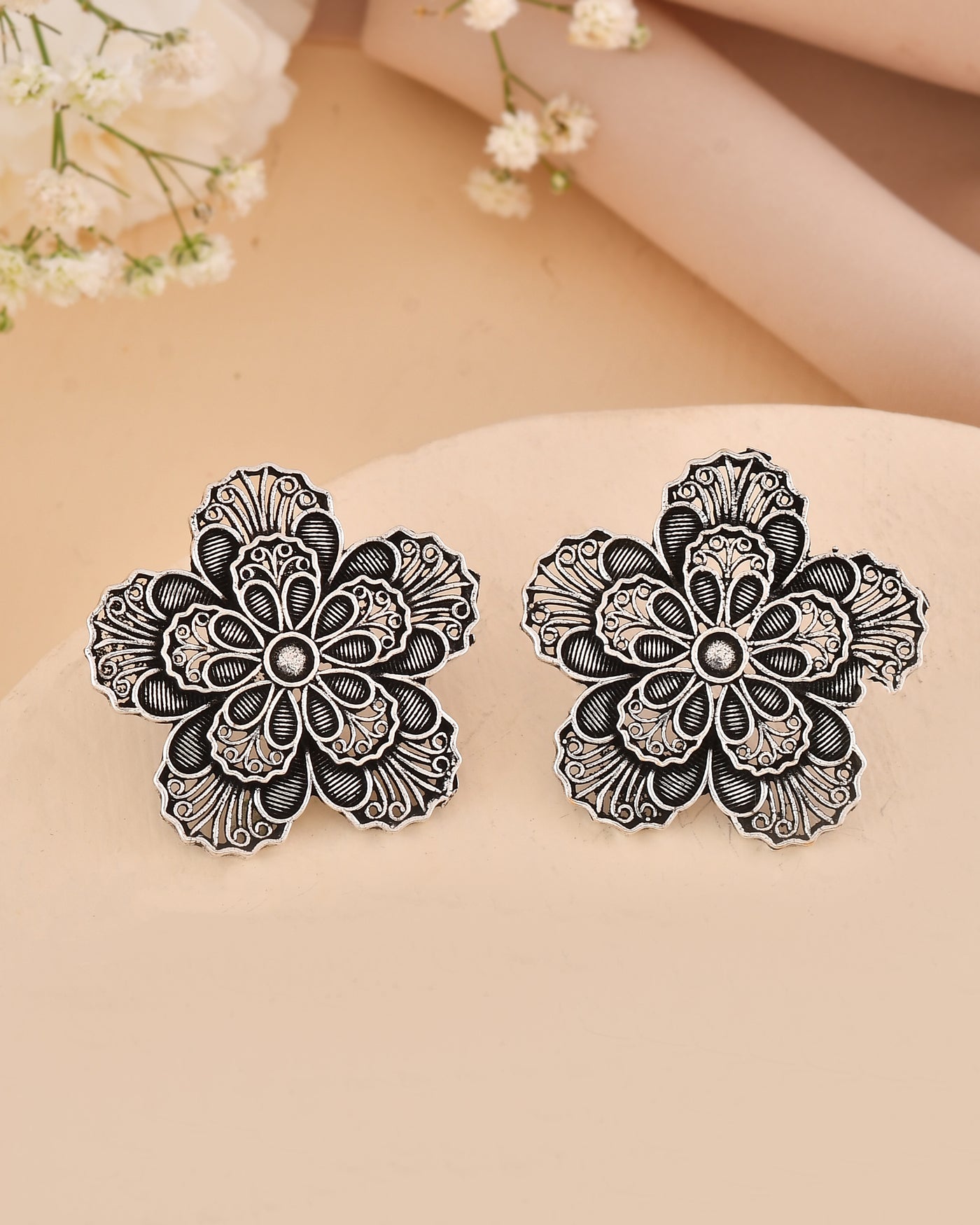 Lightweight and comfortable, the oxidized finish and detailed petals offer a blend of vintage elegance and contemporary styling. Pair this set with colorful ethnic attire to illuminate every dance move with Jaipur’s artisanal craftsmanship and charm
