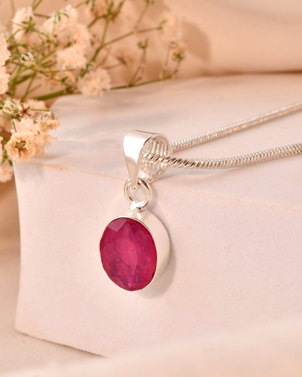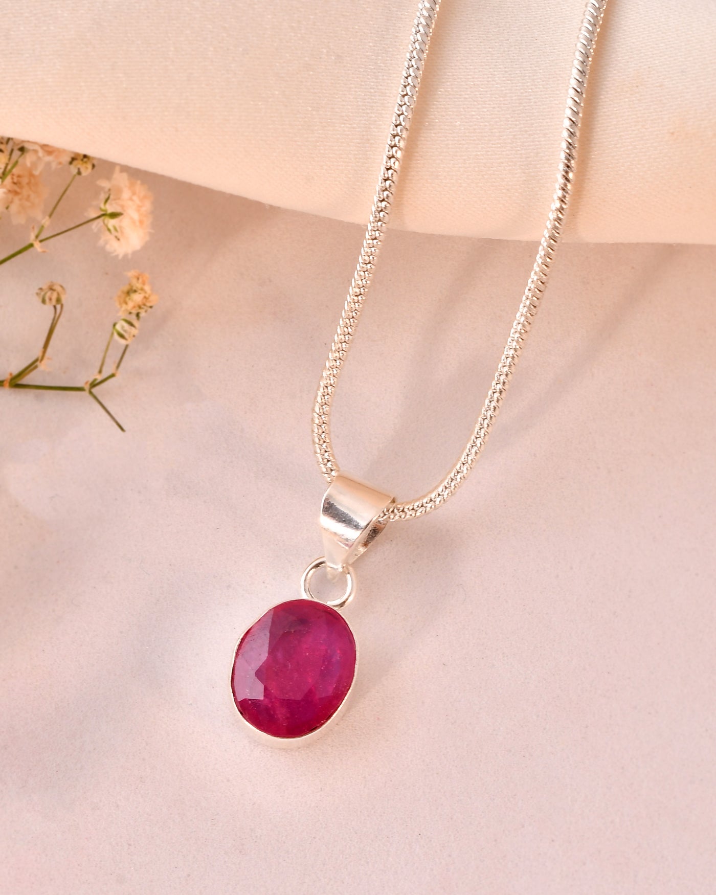 Beautiful AAA+ Quality Natural Ruby Pendent In Silver Plated