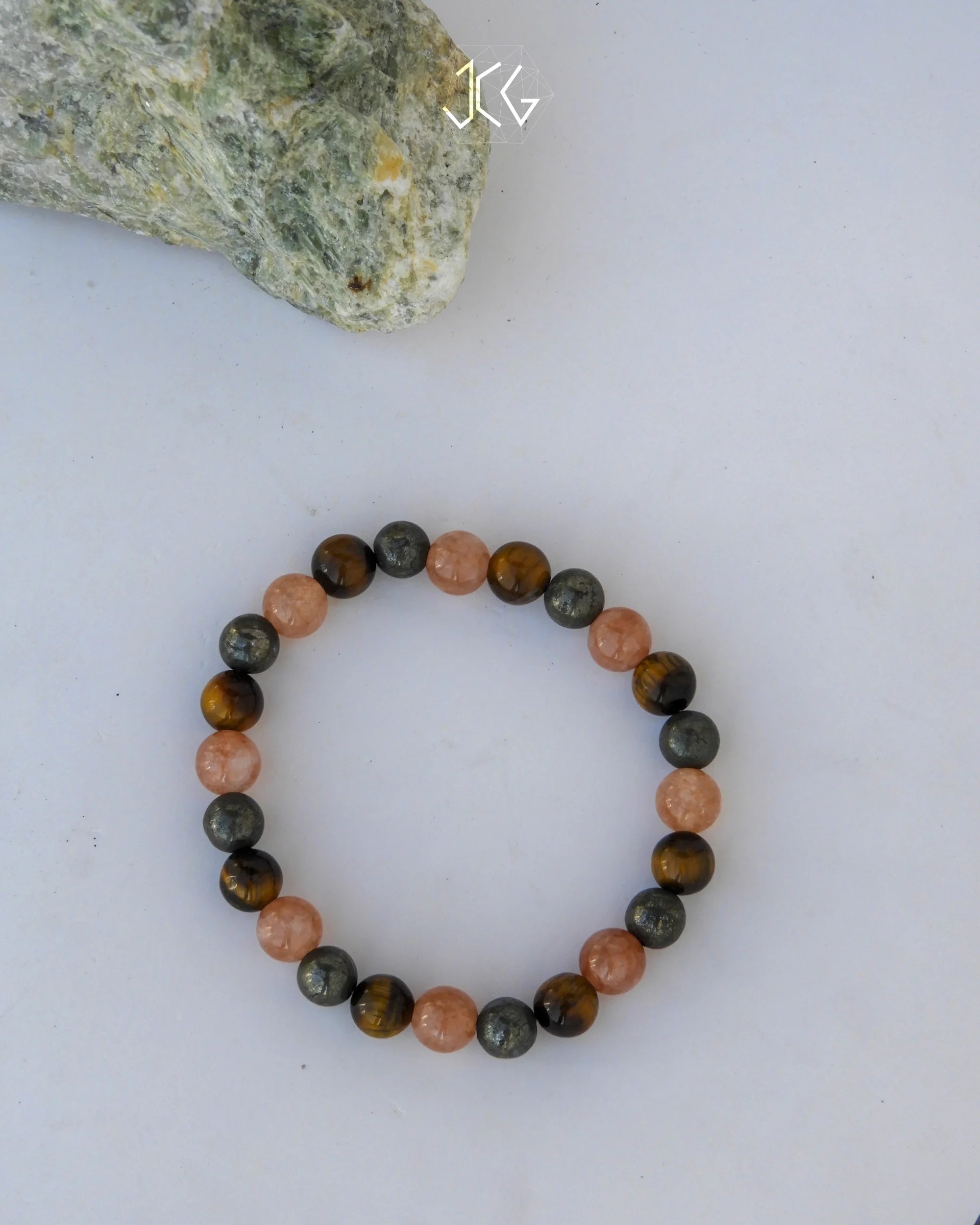 Material: 8mm natural gemstones aligned with Leo traits, strung on a durable elastic cord.