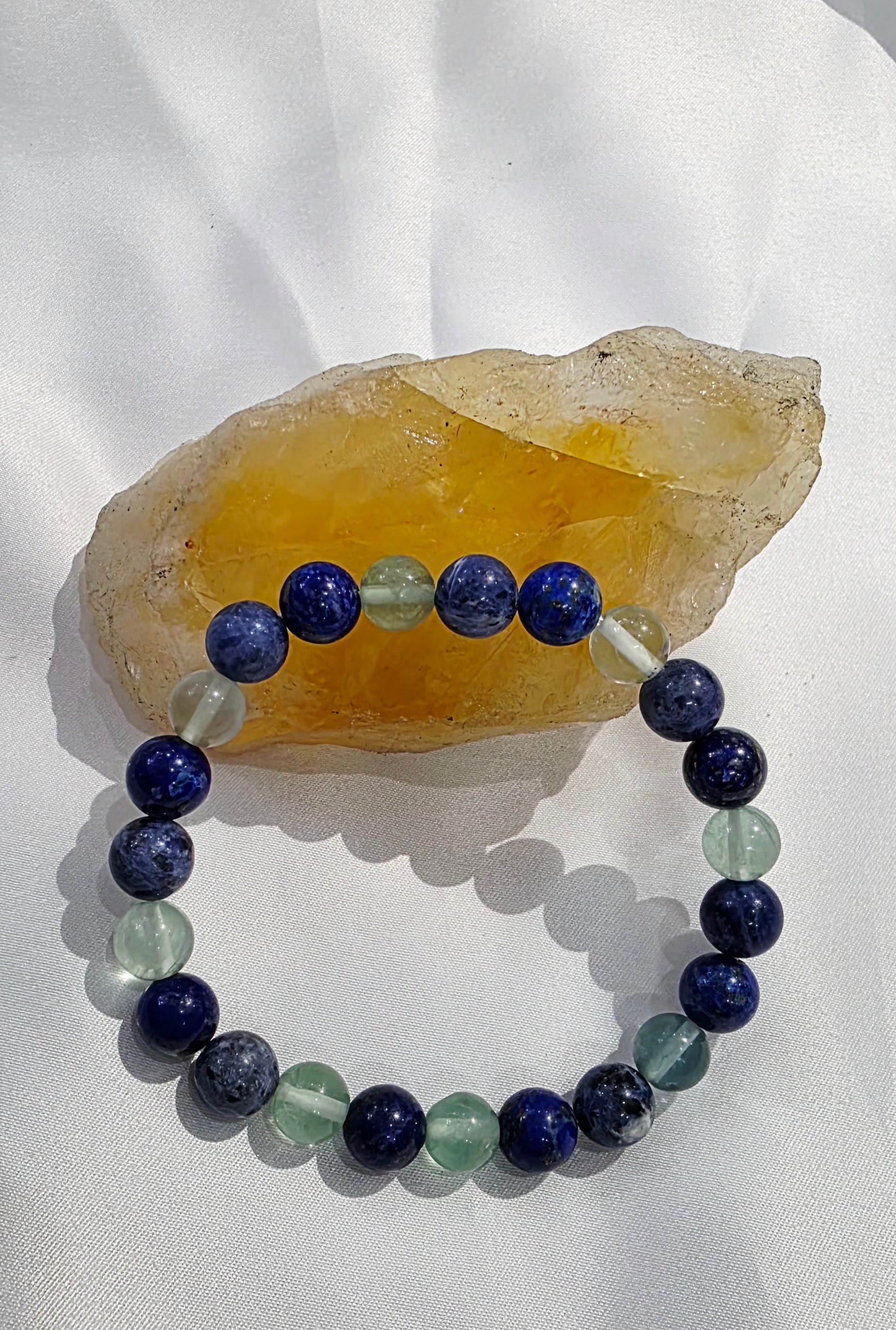Elevate your aura with this stunning Virgo (Kanya) Zodiac Bracelet. Infused with the power of Fluorite, Sodalite, and Lapis Lazuli, this bracelet promotes clarity, wisdom, and emotional balance—perfect for the analytical and practical Virgo soul.