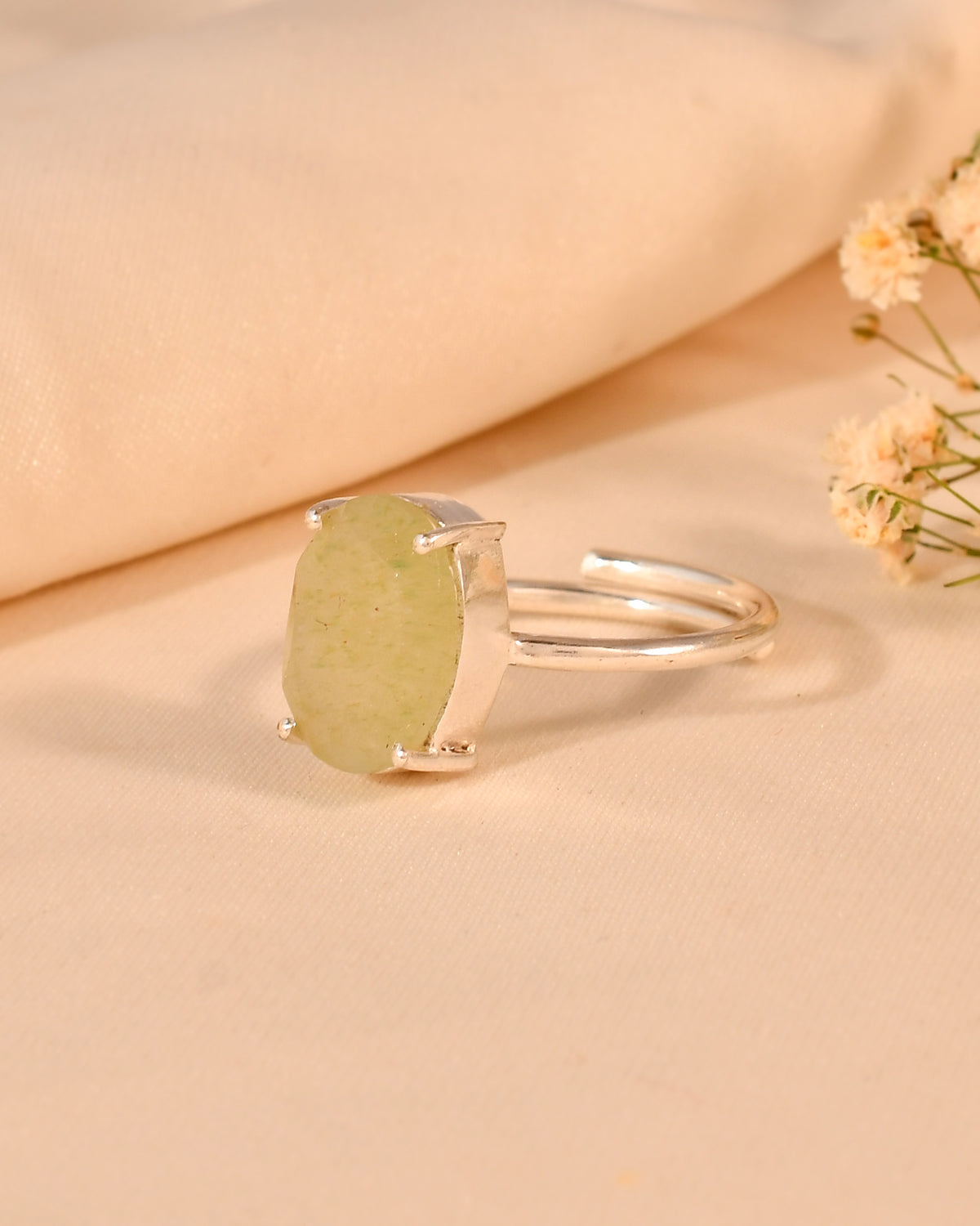 Enhance your style and energy with this elegant Natural Light Green Aventurine Ring, crafted to showcase both beauty and healing power. Known as the "Stone of Opportunity," Aventurine is believed to attract luck, abundance, and prosperity, making it a popular choice for those seeking growth and positivity in life.