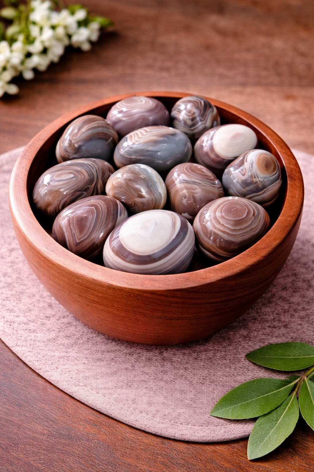 Botswana Agate is widely appreciated for its calming, grounding, and emotionally supportive energy. It is believed to help reduce stress, promote inner stability, and encourage clarity during times of change. Often associated with protection and gentle strength, this stone is also used to support emotional healing and mindful awareness. Many people use Botswana Agate during meditation, relaxation rituals, and for maintaining a peaceful, balanced environment.