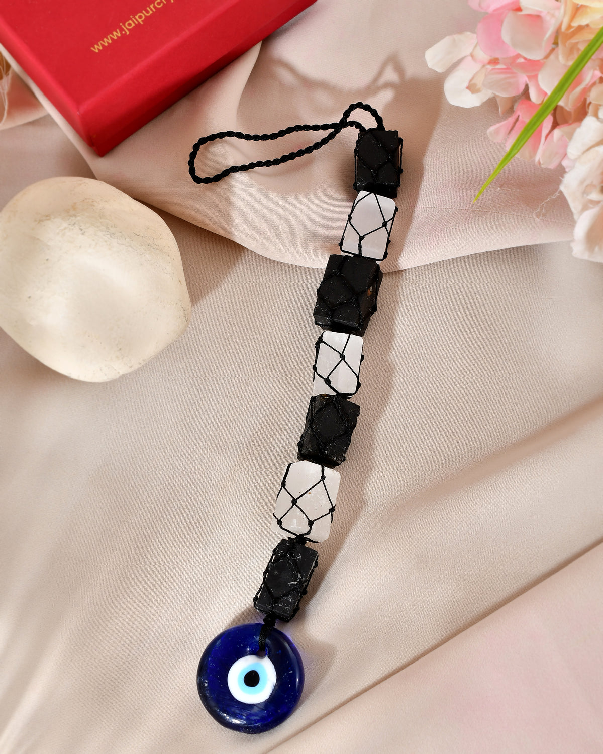 Black Tourmaline Selenite Evil Eye Protection Hanging