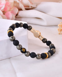 Spiritual Pyrite & Lava Natural Stone OM Bracelet