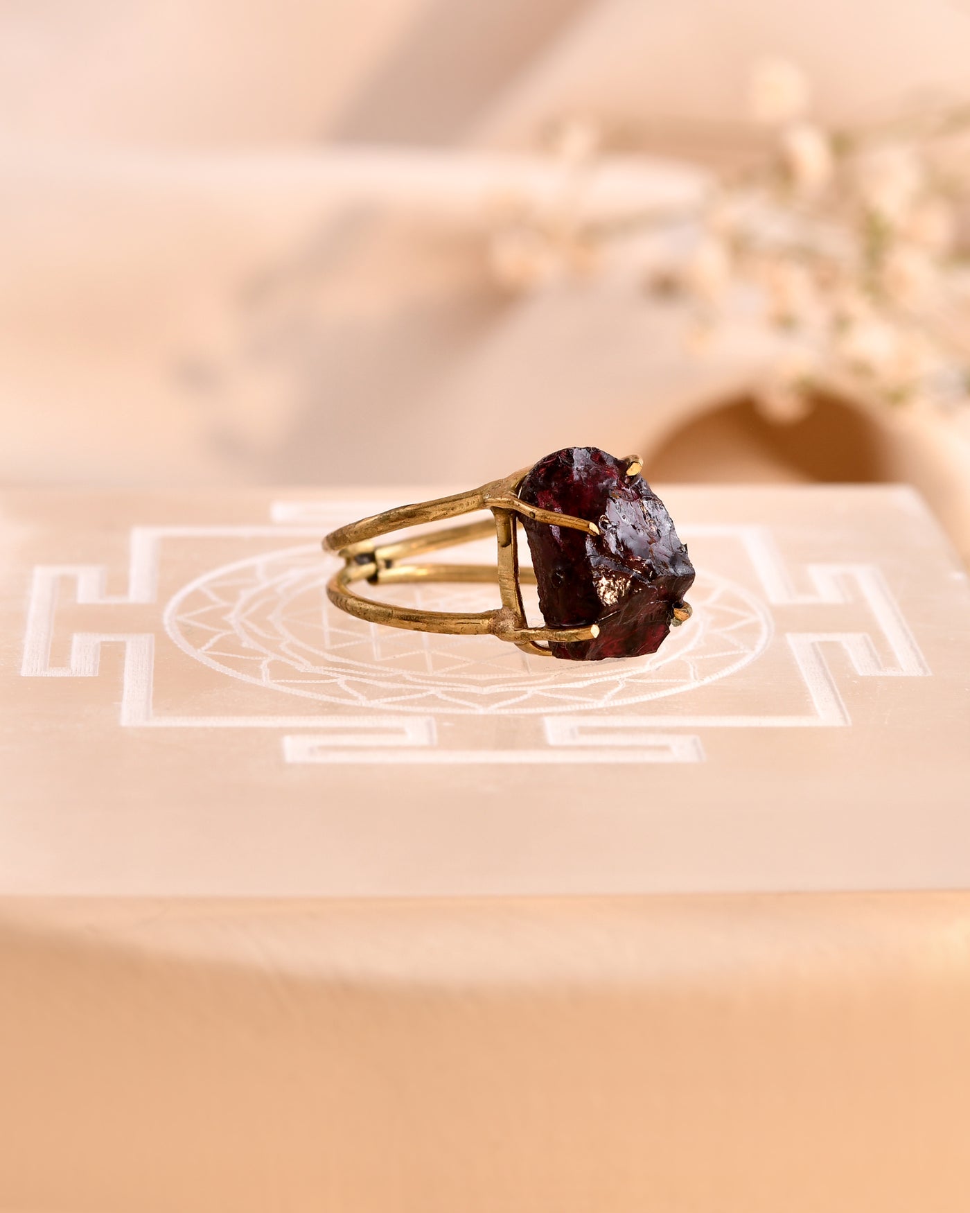 Traditionally worn as a protective talisman, garnet shields against negative energies and harm. -