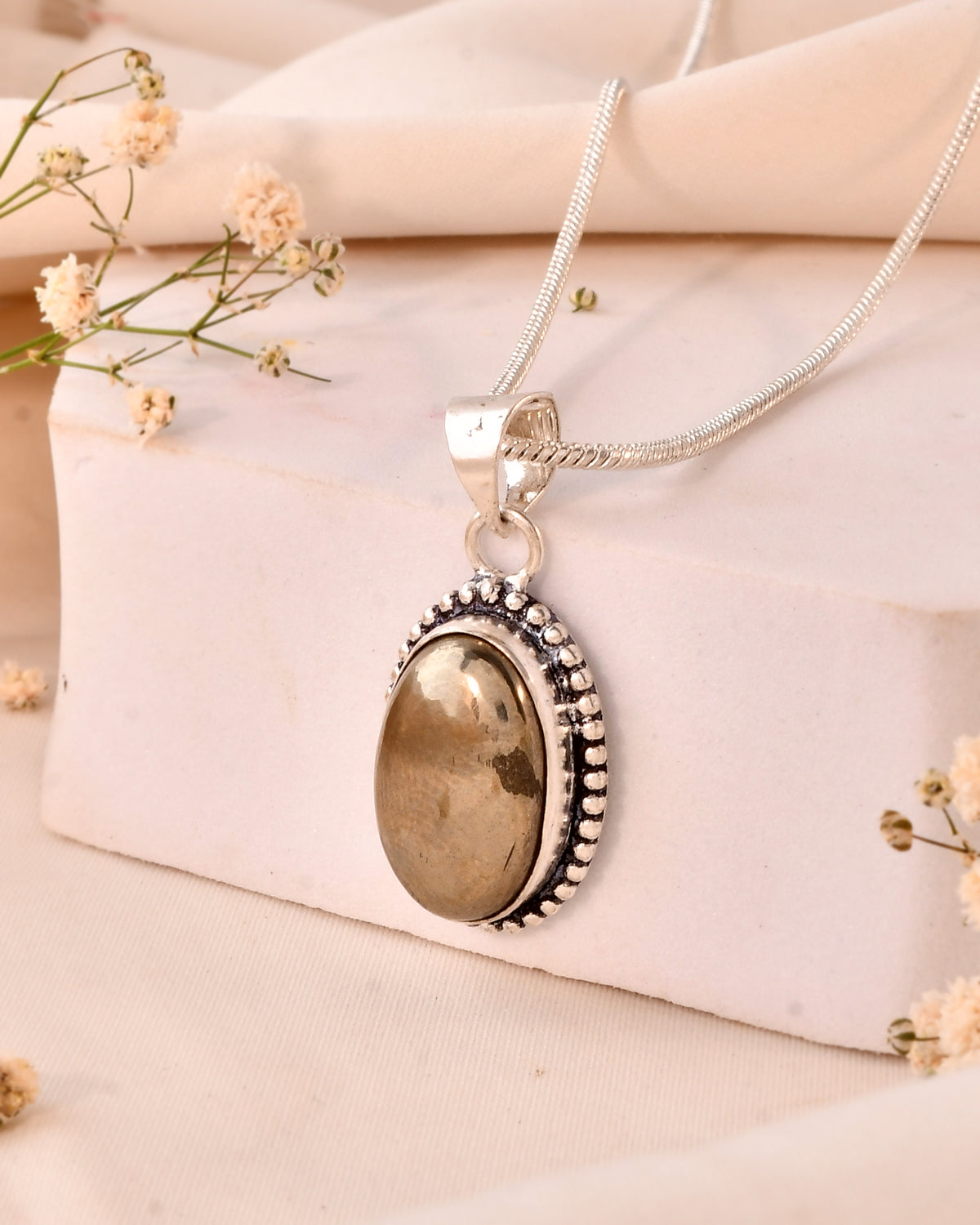 Boost confidence and attract abundance with the Pyrite Pendant, a stylish symbol of protection and success.